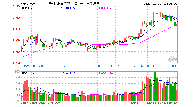 2月3日,截止午间收盘,半导体设备ETF华夏(562590)涨2.02%,报1.873元,成交额1.41亿元。半导体设备ETF华夏(562590)重仓股方面,北方华创截止午盘涨0.96%,中微公司涨3.07%,拓荆科技涨0.91%,长川科技涨6.54%,沪硅产业涨0.47%,华海清科涨2.21%,中科飞测涨3.43%,南大光电涨1.93%,安集科技涨0.98%,芯源微涨0.81%。